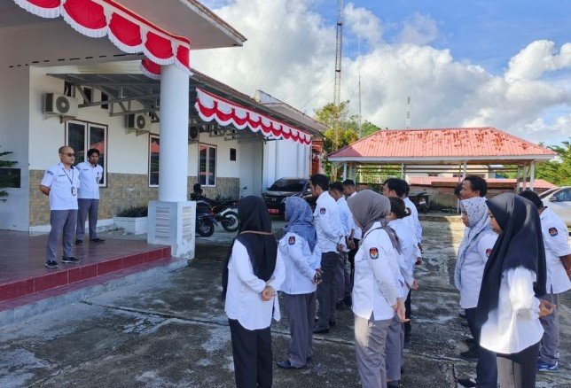 SALAKAN – KPU Kabupaten Banggai Kepulauan melaksanakan apel pagi yang dipimpin oleh Sekretaris KPU Kabupaten Banggai Kepulauan, Nurul Huda. Dalam arahannya, beliau menyampaikan kepada seluruh staf KPU Banggai Kepulauan bahwa mulai saat ini kita wajib membentuk kebiasaan untuk hadir tepat waktu, meningkatkan profesionalisme, dan menciptakan lingkungan kerja yang baik. Hal tersebut di perlukan untuk membentuk dan menumbuhkan disiplin waktu dan tanggung jawab dalam menjalankan tugas sehari-hari. Selain itu, Sekretaris KPU Kabupaten Banggai Kepulauan juga menyampaikan terkait hak - hak cuti pegawai. Hak cuti bagi Aparatur Sipil Negara (ASN) mencakup berbagai jenis, seperti cuti tahunan (12 hari kerja), cuti besar (untuk kegiatan keagamaan), cuti sakit, cuti melahirkan, cuti alasan penting (misalnya, anggota keluarga sakit/meninggal), dan cuti di luar tanggungan negara (untuk alasan pribadi yang mendesak). "Untuk yang cutinya belum digunakan, silahkan dihitung dan diambil hak - hak cutinya". (08/09/2025) Terkait seragam yang harus dikenakan oleh Jajaran KPU Kabupaten Banggai Kepulauan yaitu tetap menggunakan PDH, karena di Lingkungan Banggai Kepulauan saat ini situasi aman dan kondusif. Sehingga tidak perlu WFH dan mengenakan pakaian bebas rapi. Pada kegiatan apel pagi ini, turut hadir Kasubbag Perencanaan, Data dan Informasi, serta staf KPU Kabupaten Banggai Kepulauan sejumlah 15 orang yang terdiri dari PNS, CPNS, dan PPPK.