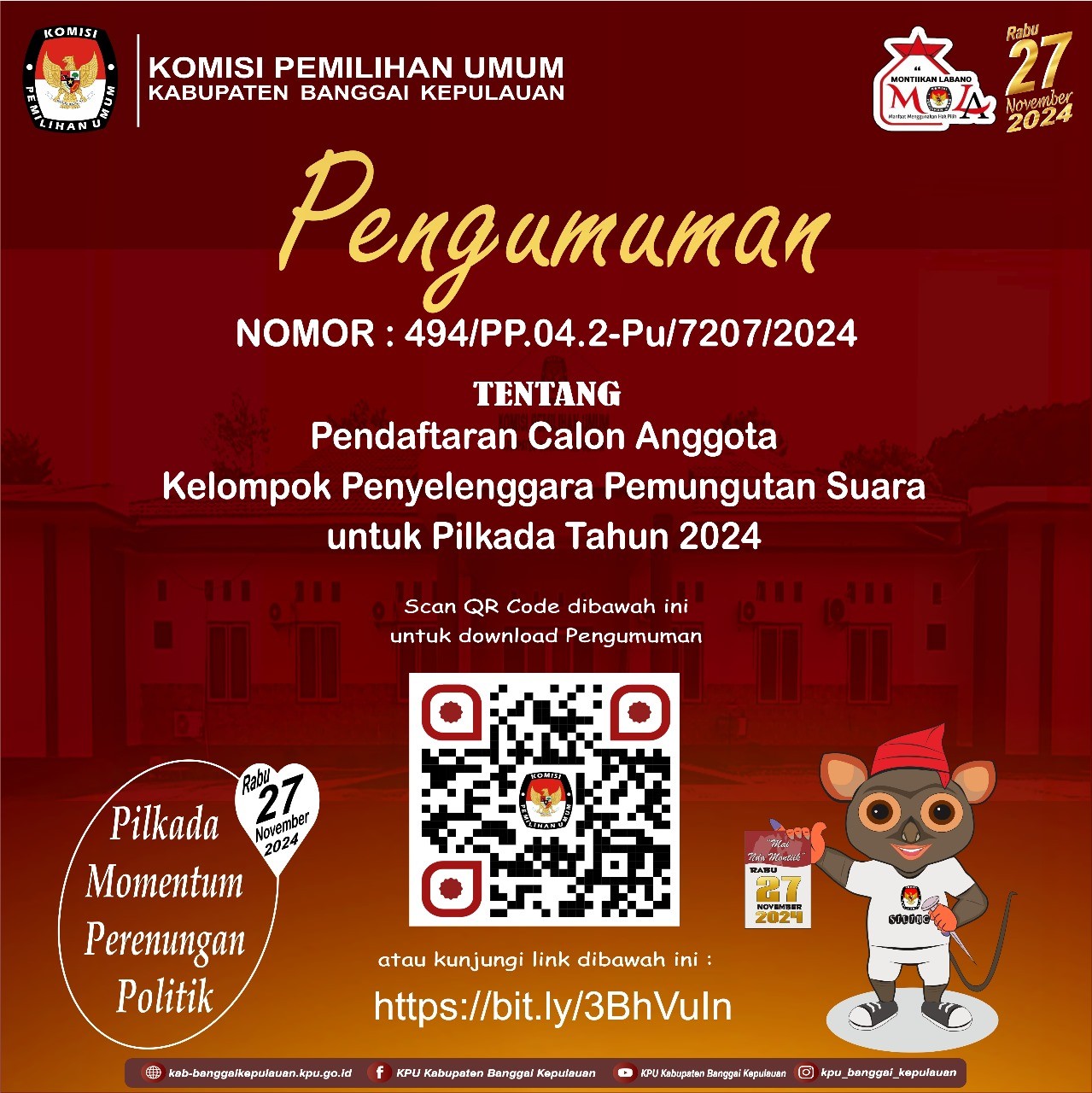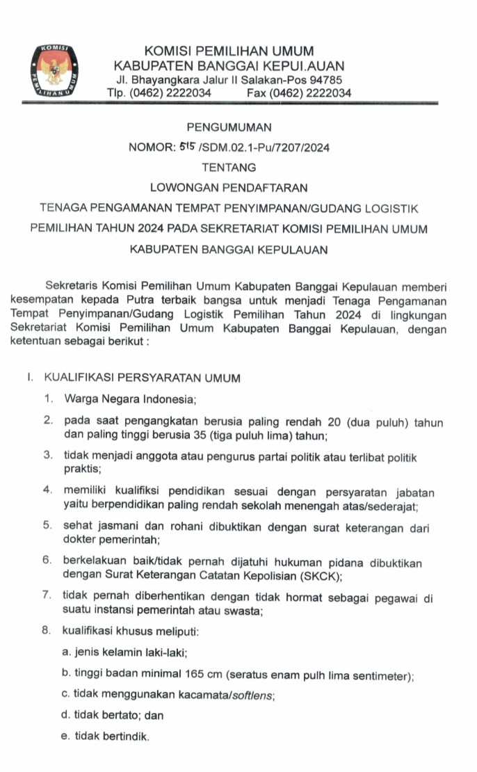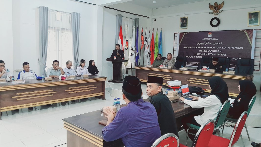 Pada Hari ini Rabu,2 Juli 2025 Pukul 10.15 WITA Yang Bertempat Diruangan Aula kantor KPU kabupaten Banggai Kepulauan Telah Berlangsung Kegiatan RAPAT PLENO TERBUKA REKAPITULASI PEMUTAKHIRAN DATA PEMILIH BERKELANJUTAN (PDPB) TRIWULAN 11 TAHUN 2025 Turut hadir 1.Supriatmo Lumuan,S.Sos.,M.Si (Ketua KPU kab.Babgkep Dan Sekaligus Membuka Kegiatan Rapat PlenoTerbuka) 2.Kompol Maikun S.H., M.H Kabag OPS Polres Bangkep(Mewakili Kapolres Bangkep) 3.Louis Steven,SH (Komisioner KPU Kab.Bangkep Divisi Teknis Penyelenggaraan) 4.Ayub M.Tiah,S.Ag.,M.Pd(Komisioner KPU Kab.Bangkel Divisi Hukum) 5.Jamaludin Pabalos,Spd.(Komisioner KPU Kab.Bangkep Divisi Perencanaan dan Data) 6.Muslim Abd.Muin Bakara,S.Kom.,Mm(Ketua Bawaslu Kab.Bangkep) 7.Radia N.Bonenehu(Sekdis PMD Kab.Bangkep) 8.Moh.Faisal Z.M(Sekdis Dukcapil Kab.Bangkep) 9.Roy Harjono(Staf Dukcapil) 10.Indra Guna Saimbi(Staf Bawaslu) 11.Febriani Lasamai(Staf Bawaslu) 12.Devita Natalia(Staf Bawaslu) 13.Moh.Rizki(Staf Bawaslu) 14.Syawaludin Karim(Staf Bawaslu) SK Penetapan Rekapitulasi Pemutakhiran Data Pemilih Berkelanjutan (PDPB) Triwulan II Tahun 2025 : Download Lampiran