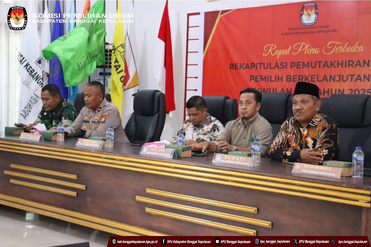Hal ini disampaikan oleh Ketua KPU Kabupaten Banggai Kepulauan Supriatmo Lumuan dan didampingi oleh seluruh anggota KPU Kabupaten Banggai Kepulauan, Fatharany Berkah Abdul Barry, Jamaludin Pobalos, Louis Steven dan Ayub M. Tiah saat membuka kegiatan rapat pleno terbuka Rekapitulasi Pemutakhiran Data Pemilih Berkelanjutan (PDPB) Triwulan III tahun 2025 bertempat di aula KPU Kabupaten Banggai Kepulauan, Kamis (2/10/2025).