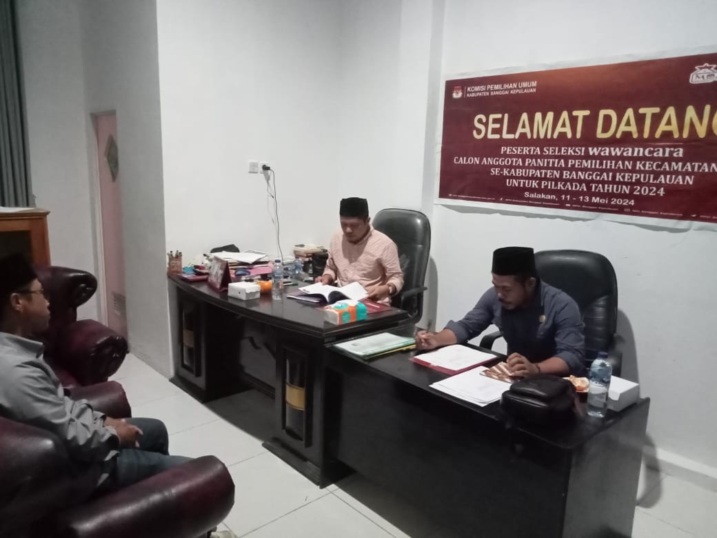 KPU BANG-KEP, SALAKAN,- Komisi Pemilihan Umum (KPU) Banggai-Kep, Melakukan proses seleksi wawancara untuk calon anggota Panitia Pemilihan Kecamatan (PPK) yang Dilakukan di 2 titik, Sabtu, 11 Mei 2024